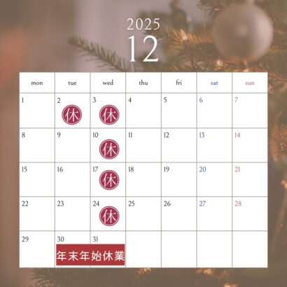 2025年12月 定休日のお知らせ